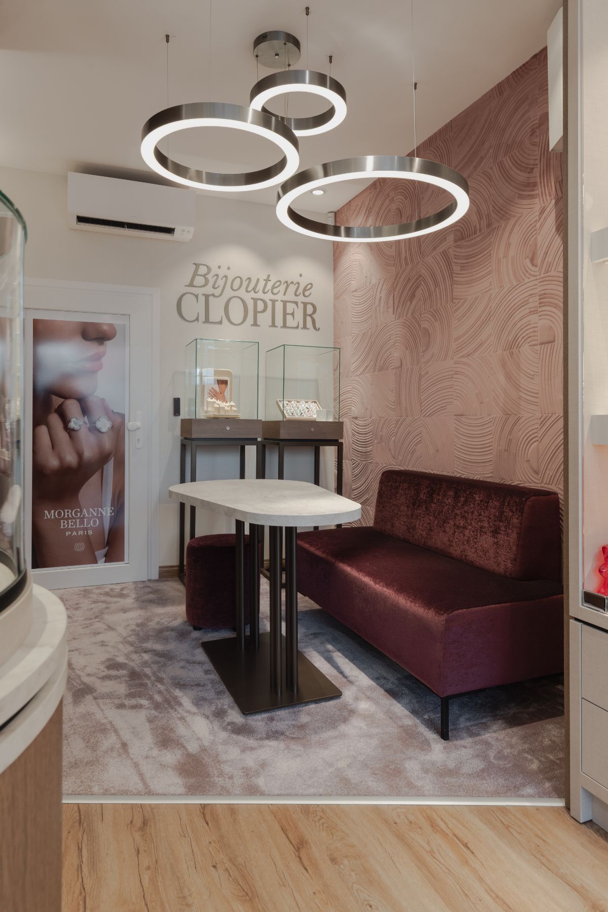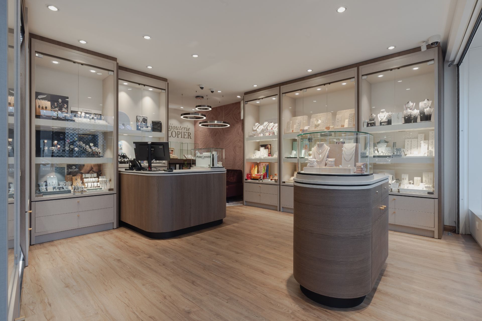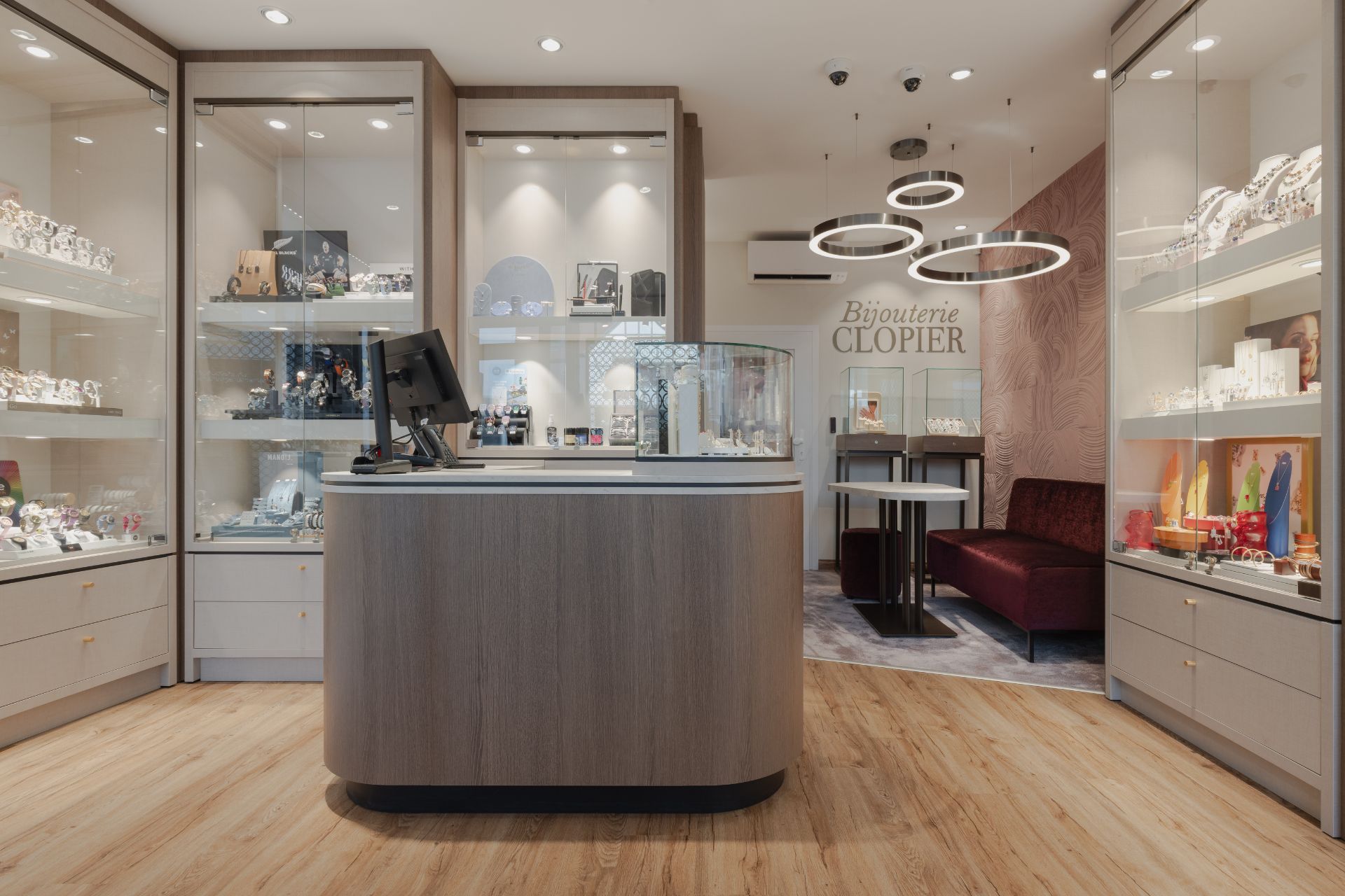 Tijdens het vervolgtraject werden de wensen van Corentin steeds concreter. De winkel moest licht, rustig en uitnodigend zijn, met enkele uitgesproken accenten zoals zachte roze-rode tinten en subtiele houten details. Praktische elementen zoals tiroirs onder de presentaties en een compacte balie aan de etalage maken de winkel functioneel, zonder dat het druk wordt. Ook over de indeling was goed nagedacht: horloges en sieraden krijgen een duidelijke plek, er is een rustige verkoopzit met tapijt, en meerdere fijne werkplekken zijn geïntegreerd. Dankzij de flexibele aanpak van WSBdesign en Forbettershops.com, van volledig ontzorgen tot ontwerp en levering, werd er een winkel gecreëerd die stijlvol, functioneel en betaalbaar is. Het resultaat: een winkelinrichting op maat die karakter, sfeer en gebruiksgemak perfect combineert.