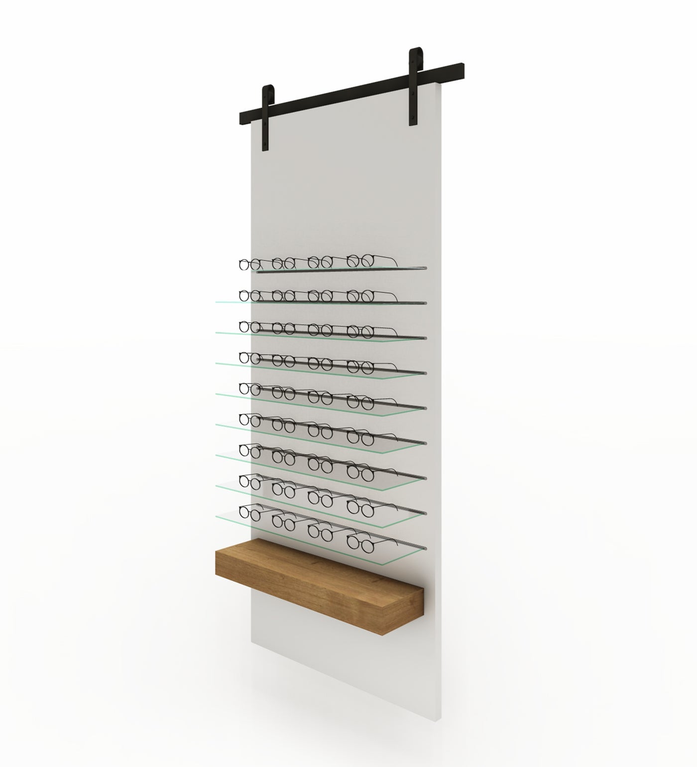 Glasgow C 1000 | Industrial | Estante de cristal de presentación de pared para tienda de gafas