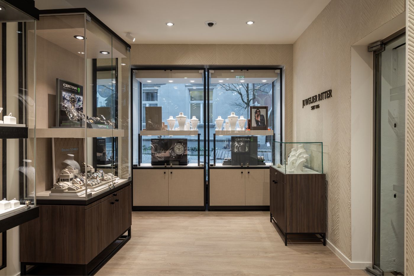 Au cœur de Feldkirch, la bijouterie Juwelier Ritter a subi une transformation remarquable. La rénovation combine la riche histoire de la maison avec un intérieur contemporain, les voûtes classées monument historique dégageant une atmosphère chaleureuse et exclusive.