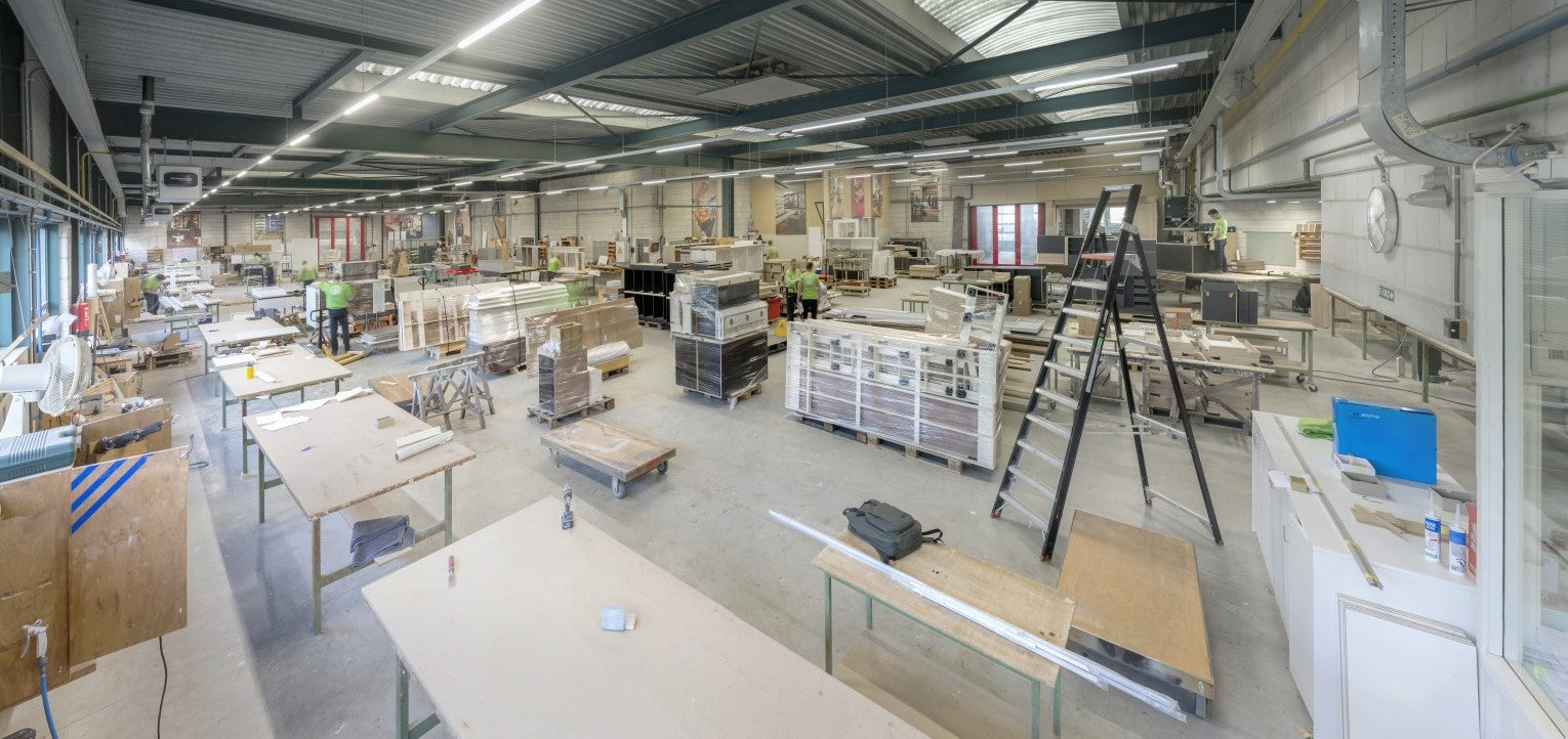 In onze fabriek verwerken we de mooiste materialen met moderne machines en vakmanschap tot meubels van hoge kwaliteit. Ervaren leermeesters werken samen met jong talent om elke bestelling efficiënt en met oog voor detail te realiseren. Zo garanderen we korte doorlooptijden en scherpe prijzen.